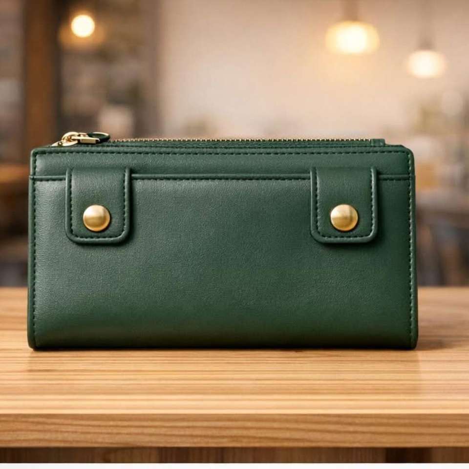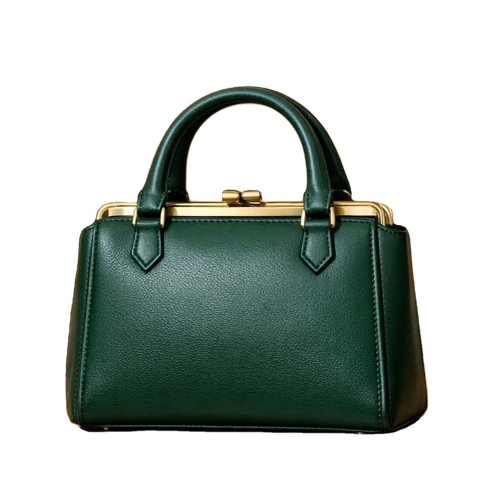 This product is a structured green leather top-handle hand bag featuring lock bags