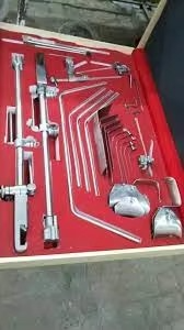 ชุดเครื่องมือถ่างช่องท้อง Thompson พร้อมกล่อง วัสดุสแตนเลสเกรดพรีเมียม สำหรับการผ่าตัดช่องท้อง ใช้ซ้ำได้ พร้อมระบบโต๊ะผ่าตัด