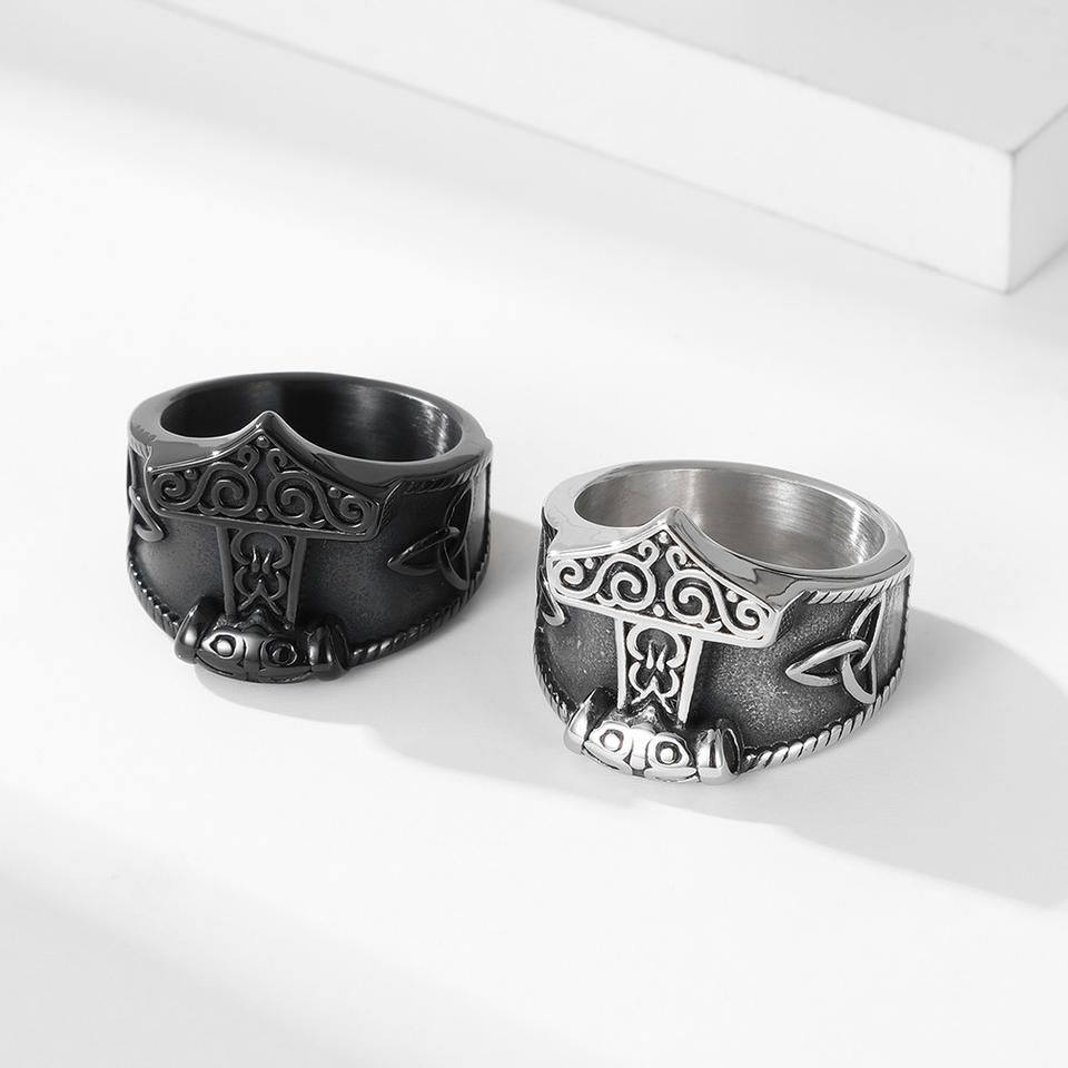 แหวนเหล็กไทเทเนียมรูปค้อนของธอร์ ดีไซน์สมอเรือสไตล์ไวกิ้งสำหรับผู้ชาย ของขวัญเครื่องประดับ