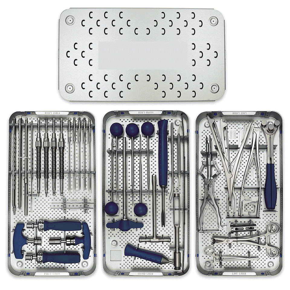 ชุดเครื่องมือศัลยกรรมกระดูกสันหลังส่วนอก-หลัง ระบบสกรูเพดิเคิล ทำจากสแตนเลส สำหรับการผ่าตัดแบบลดขนาด/มาตรฐาน