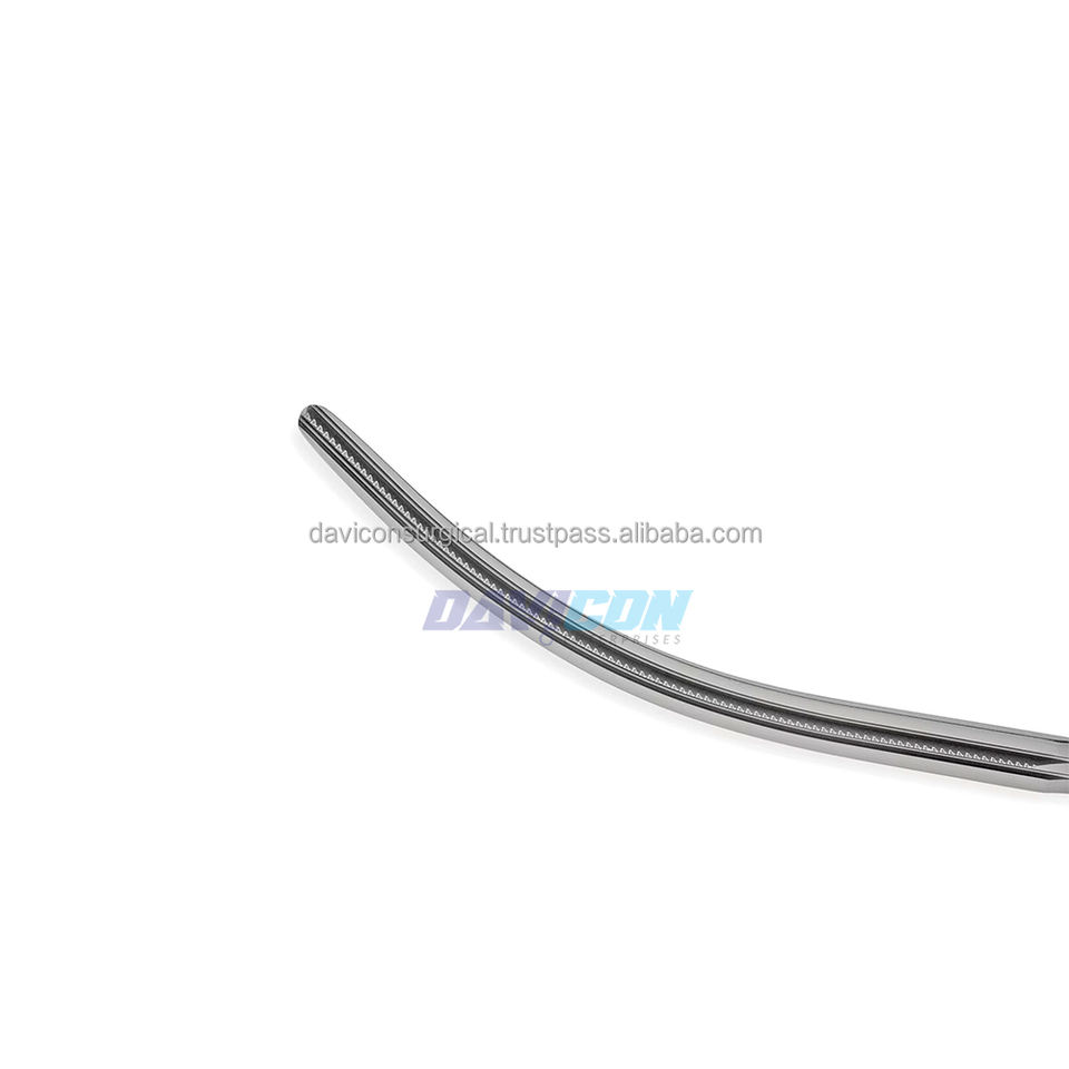 คีมหนีบแบบ DeBakey สำหรับการผ่าตัดผ่านกล้องทางทรวงอก ทำจากเหล็กกล้าไร้สนิม ขนาด 65 มม. โค้งงอ 1x2 ปากคีมแบบไม่ทำให้เกิดการบาดเจ็บ แกนขนาด 10 มม. พร้อมตัวล็อค ด้ามจับแบบงอ ขนาด 17 ซม. ความยาวรวม 9.75 นิ้ว