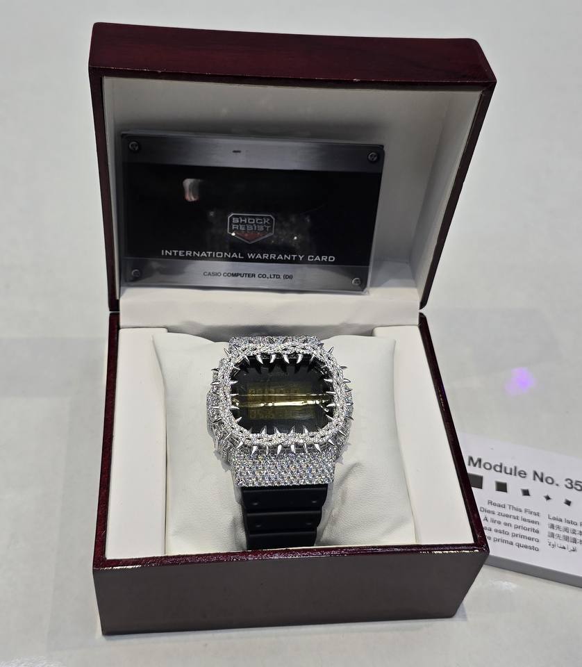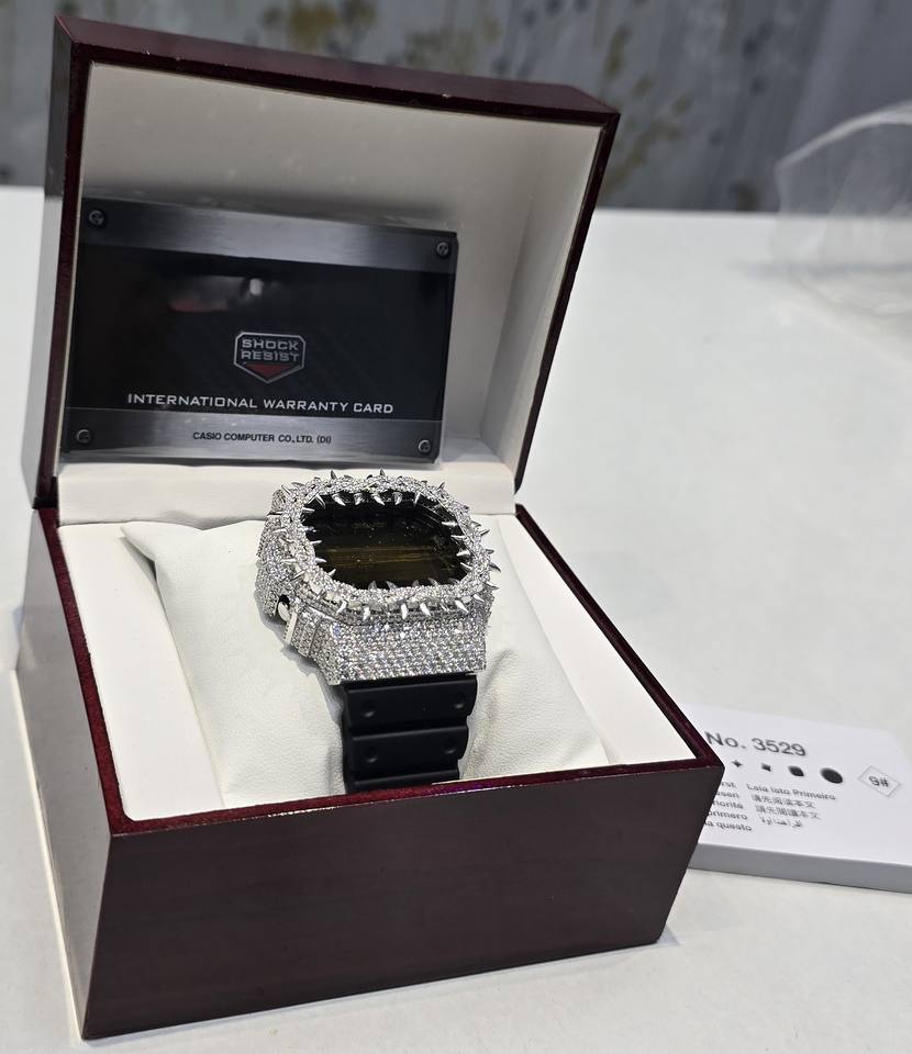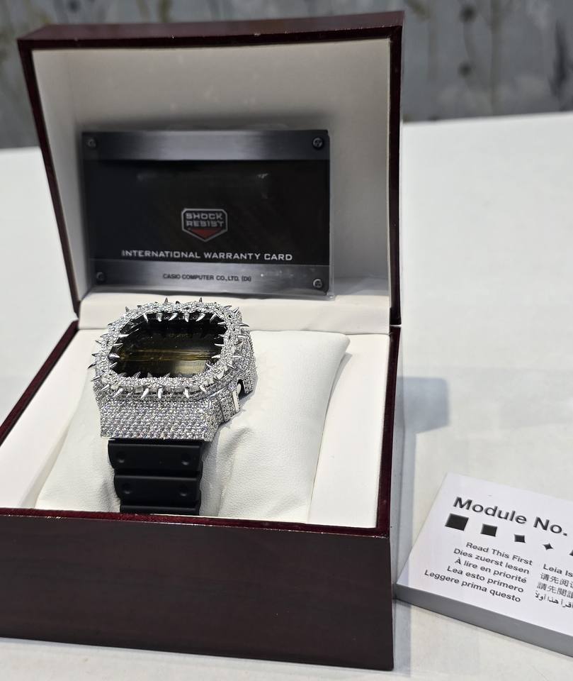 กล่องนาฬิกาสแตนเลสสตีลหนาม DW5600ดิจิตอล VVS Moissanite ประดับเพชรแบบฝาปิดเครื่องทดสอบเพชรแฟชั่นจำกัด