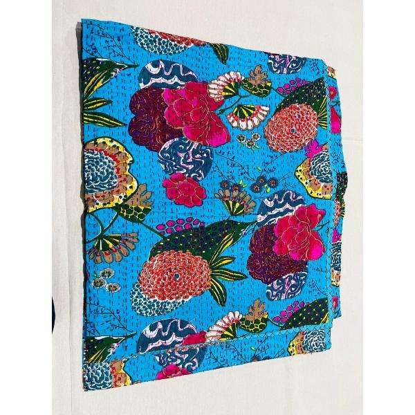 ผ้าคลุมเตียงผ้าฝ้ายคันธาที่ทำอย่างพิถีพิถัน พร้อมลายพิมพ์บล็อกที่ได้แรงบันดาลใจจากเรื่องราว และพื้นผิวธรรมชาติเพื่อการนอนหลับที่อบอุ่นใจ