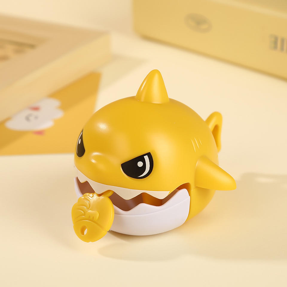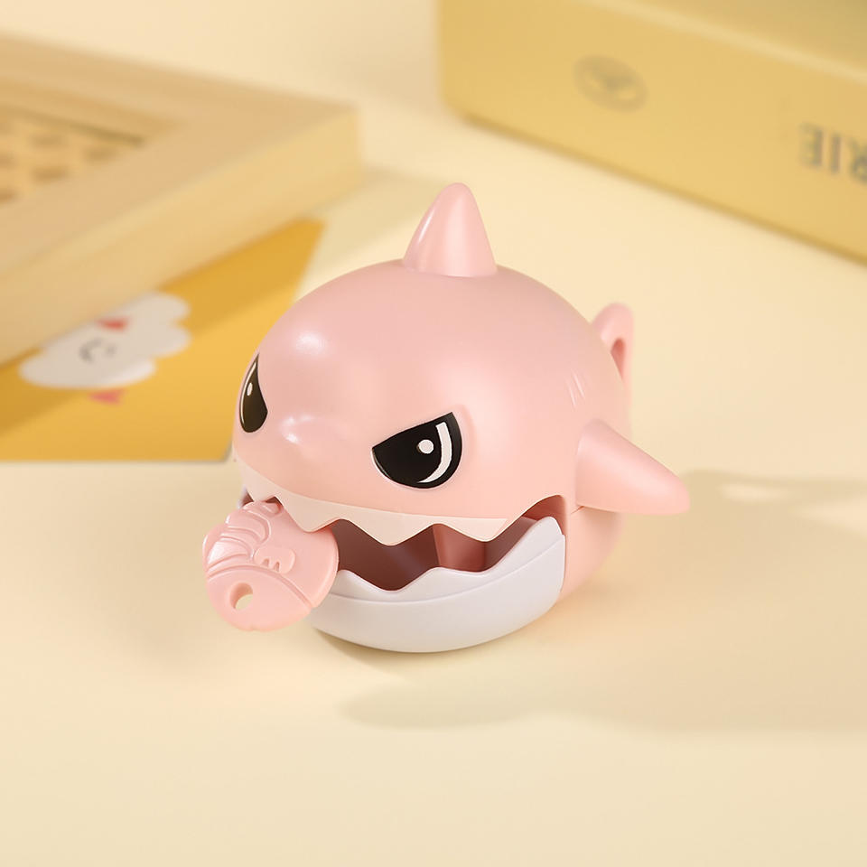 พวงกุญแจการ์ตูนฉลามกัดด้าย ของเล่นฉลามกัดด้ายแบบดึงเชือกเคลื่อนไหวได้ ฉลามกินปลาเล็ก