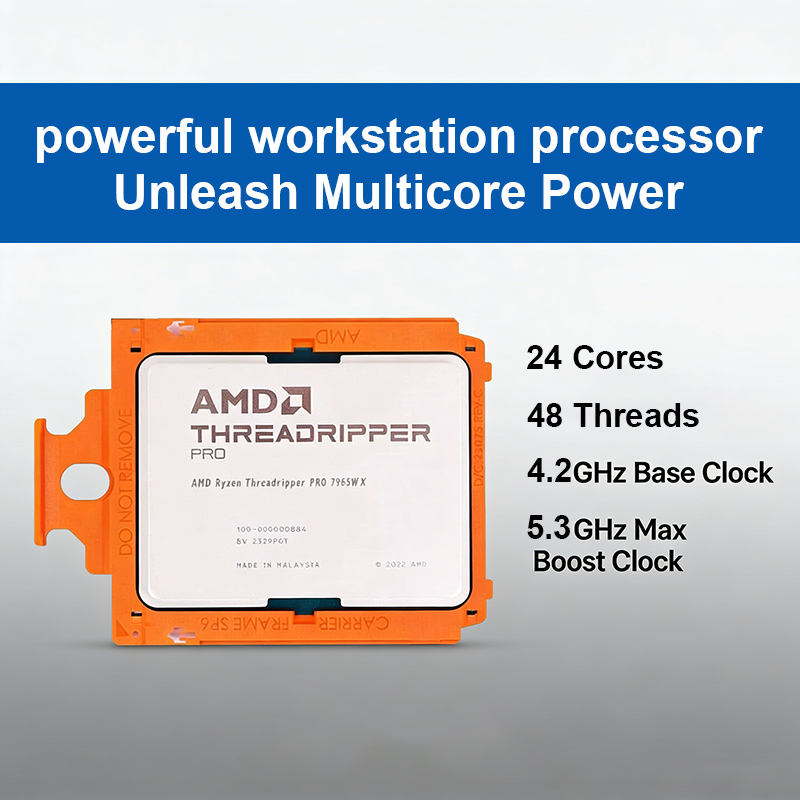 ซีพียู Threadripper PRO 7965WX โปรเซสเซอร์ 350W แคช 128MB 24 คอร์ 4.2GHz-5.3GHz 48 เธรด sTR5 ซ็อกเก็ต DDR5 สำหรับเซิร์ฟเวอร์เวิร์กสเตชัน