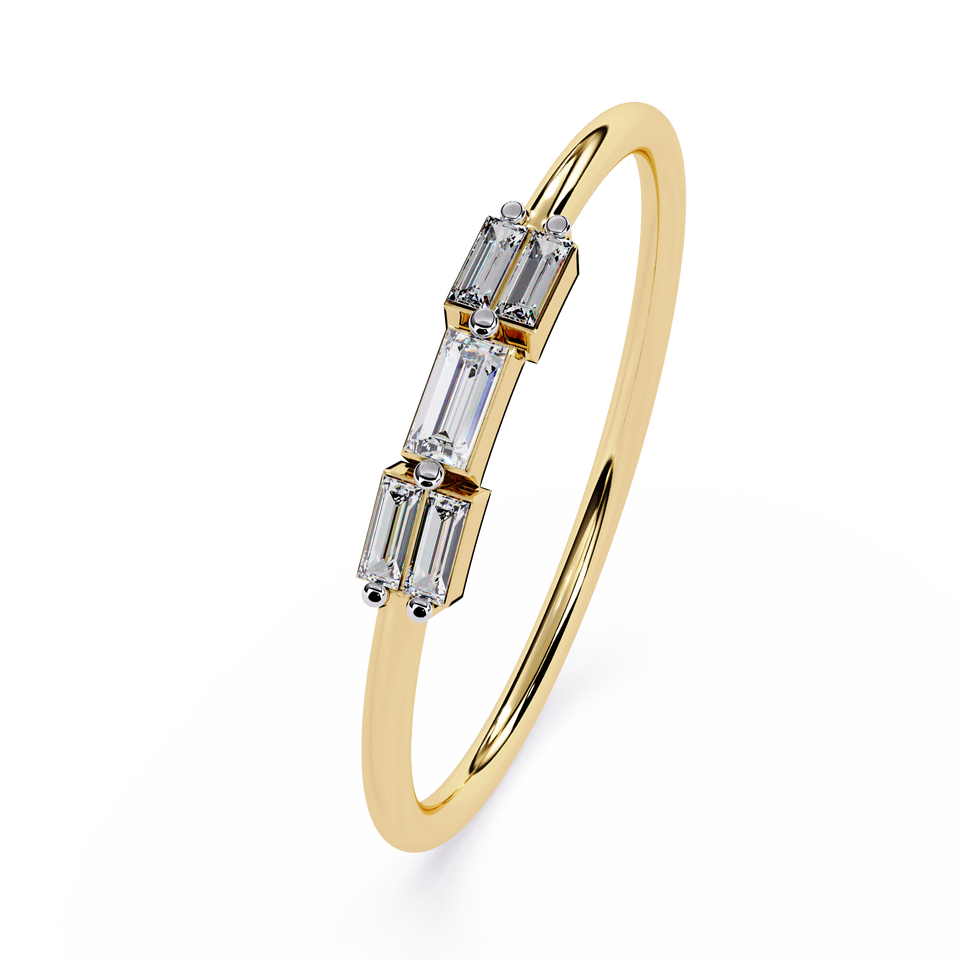 แหวนหมั้นเพชรทรงบาแกตต์ธรรมชาติ 3 เม็ด ตัวเรือนบางเฉียบ ทองคำขาว 14K 0.14 กะรัต รับรองโดย IGI สำหรับผู้หญิง