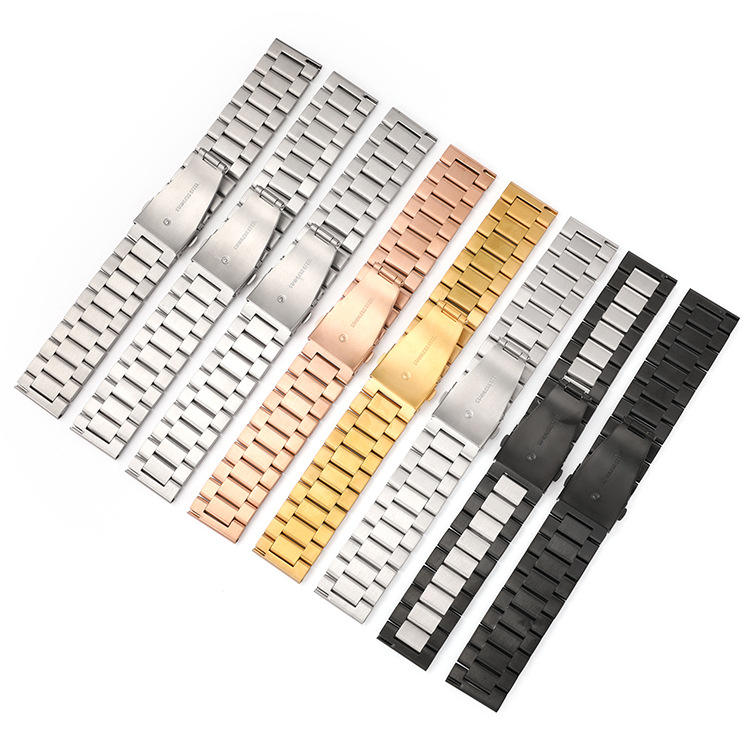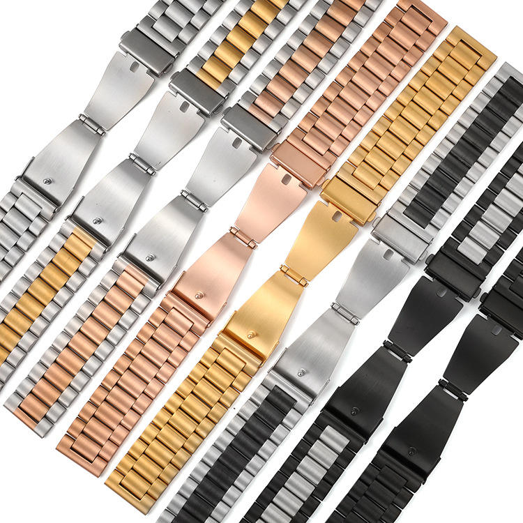 สายนาฬิกาข้อมืออัจฉริยะสแตนเลสสตีลแบบสามเม็ด ขนาด 18 มม. 20 มม. 22 มม. สายโลหะแบบเชื่อมต่อ ใช้ได้กับนาฬิกา Galaxy Watch Series