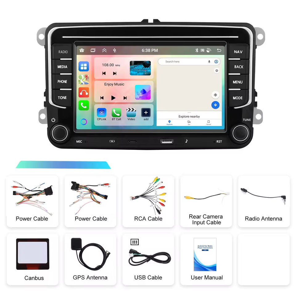 สามยี่ห้อเข้ากันได้กับรถยนต์สเตอริโอ podofo 7นิ้ว6 + 128GB ไร้สาย CarPlay Android Auto WiFi GPS Volkswagen Seat Skoda
