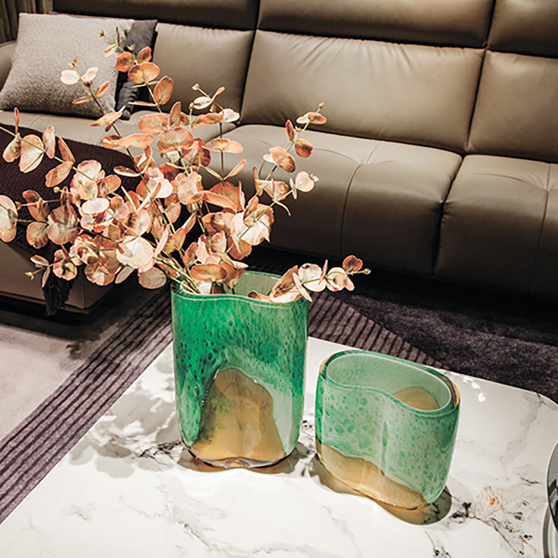 แจกันดอกไม้คริสตัลสีขาวและถาดรูปไข่สามสีผสมกันตกแต่งบ้าน