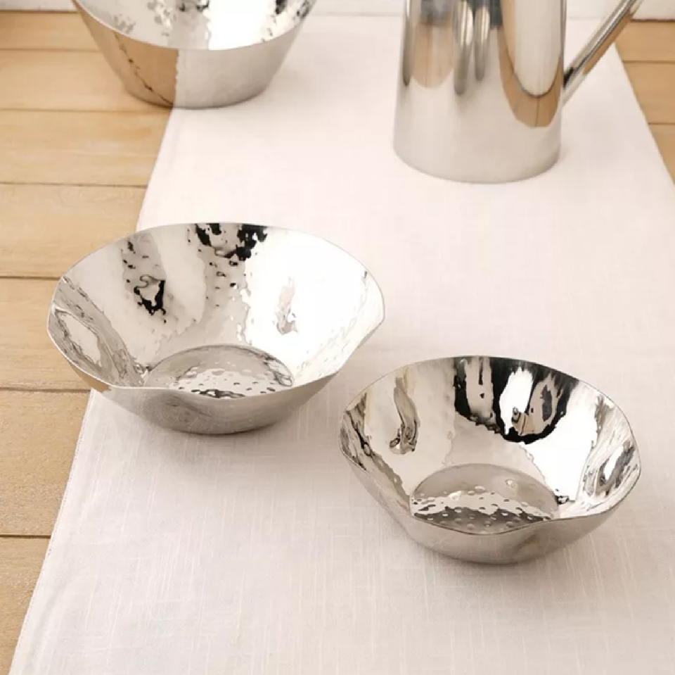 ชามตกแต่งสีทองตอกที่เชื่อมต่อกันสามใบบนขาตั้งเหมือนกิ่งไม้-ชามโลหะที่ไม่เหมือนใครหรือของประดับ