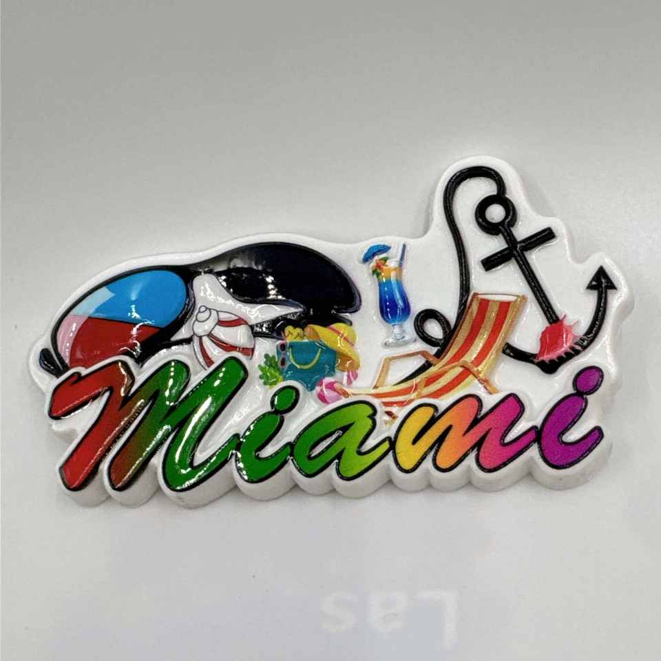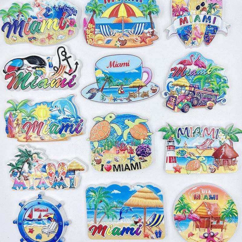 แม่เหล็กติดตู้เย็นรูปทิวทัศน์ไมอามี สหรัฐอเมริกา แบบสามมิติ ของที่ระลึกเรซิ่นสร้างสรรค์สำหรับการเดินทางข้ามพรมแดน สไตล์โลโก้ แม่เหล็กติดตู้เย็น