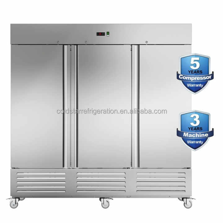 ตู้เย็นสเตนเลสระบายความร้อนด้วยอากาศแบบสามประตูตู้ควบคุมแบบดิจิตอลผ่านการรับรอง CE