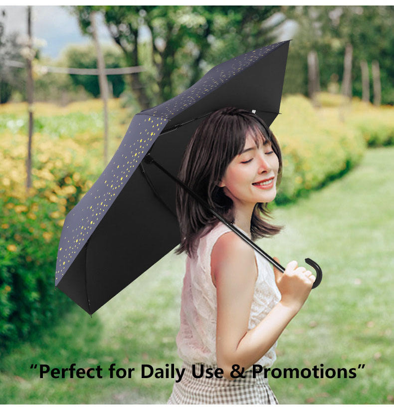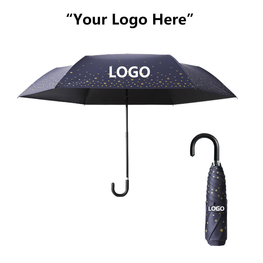 ร่มพับสามตอนแบบพกพาขนาดเล็กพร้อมด้ามจับรูปตัว J ป้องกันรังสียูวี ชุดของขวัญสุดหรูสำหรับของขวัญทางธุรกิจ