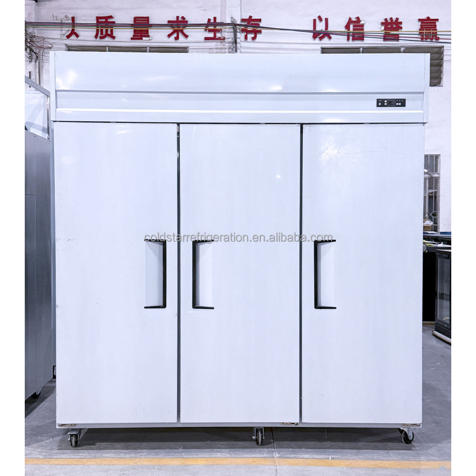 ตู้แช่แข็งแบบกระจกสามประตูตู้โชว์เชิงพาณิชย์พร้อมพัดลมระบายความร้อนจอแสดงผลดิจิตอลแบบละลายน้ำแข็งอัตโนมัติ