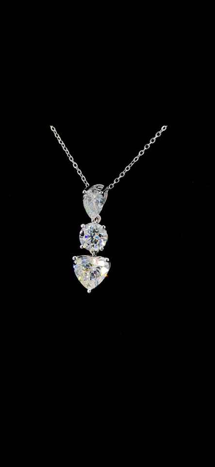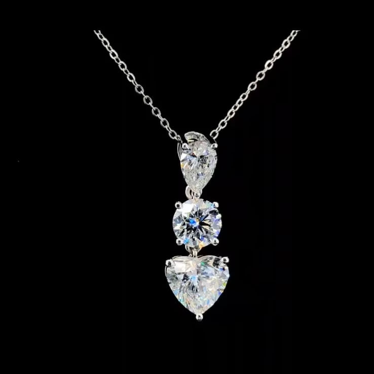 สร้อยคอจี้เพชรรูปหัวใจสามเม็ดสำหรับผู้หญิงสไตล์น่ารักการปลูกเพชรในห้องปฏิบัติการสำหรับงานแต่งงานหรือของขวัญ