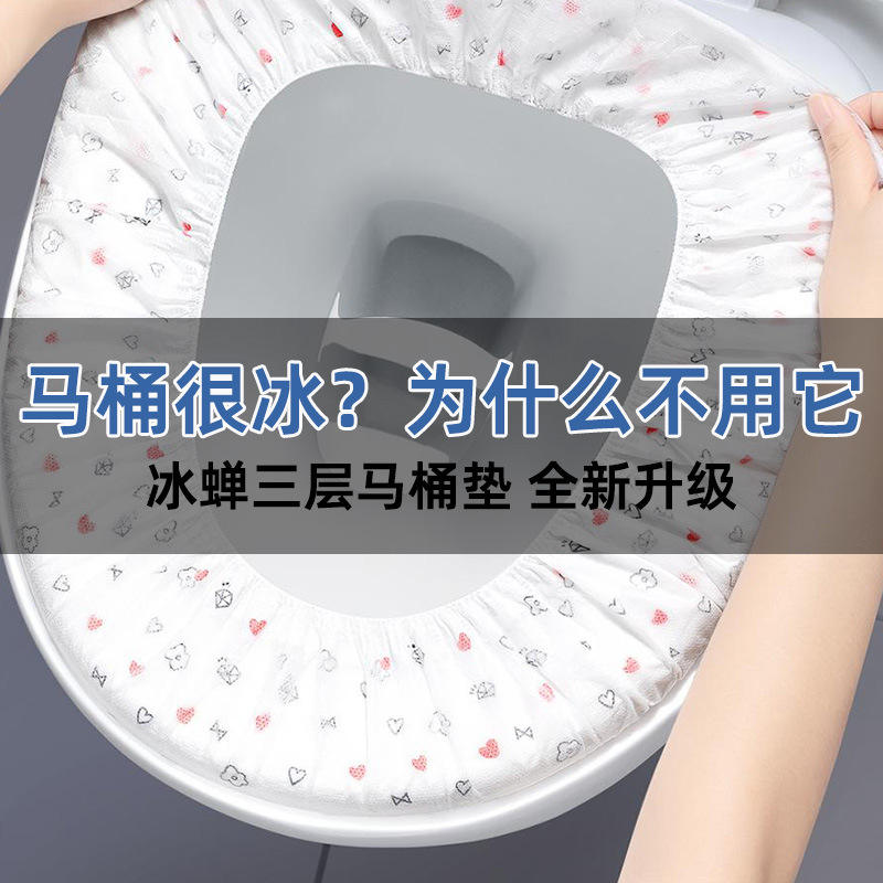 แผ่นรองนั่งชักโครกแบบใช้แล้วทิ้งสามชั้น ผลิตจากผ้าไม่ทอ กันน้ำ สำหรับใช้ในบ้าน โรงพยาบาล และการเดินทาง
