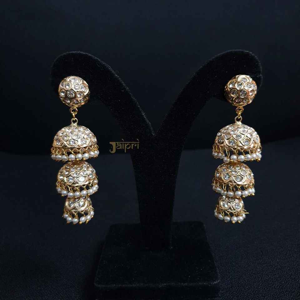 ต่างหูหินไข่มุก jhumki สามชั้น