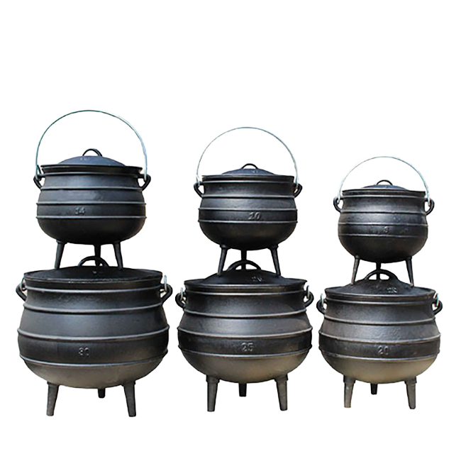 หม้อดัตช์โอเว่นเหล็กหล่อสามขา ฝาปิดขนาดใหญ่ หม้อพ็อตจี้แบบแอฟริกัน หลายขนาด อุปกรณ์ทำอาหารสำหรับตั้งแคมป์และกิจกรรมกลางแจ้ง ทำจากโลหะ ให้ความร้อนได้ดีเยี่ยม