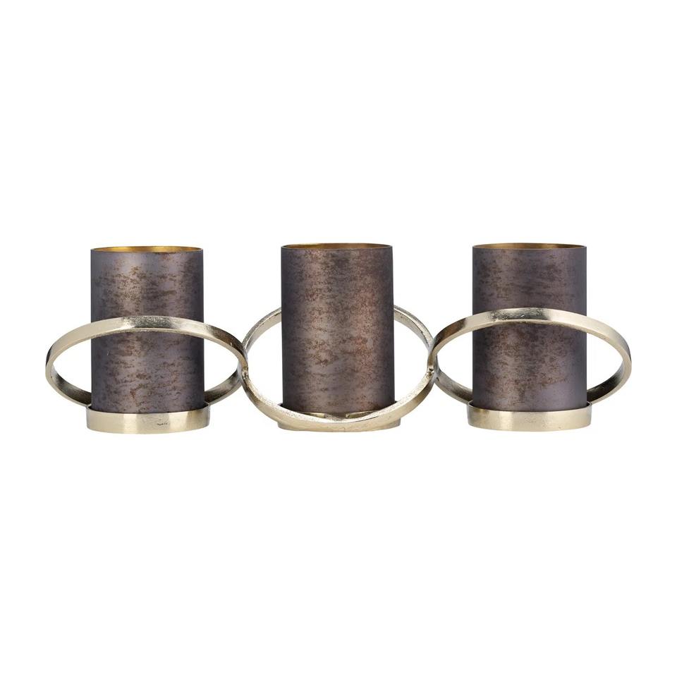 เชิงเทียนรูปวงแหวนโลหะเชื่อมต่อกัน 3 ชั้น ดีไซน์แบบนามธรรม ร่วมสมัย สีทองโบราณ สำหรับตกแต่งกลางโต๊ะในเทศกาลคริสต์มาส