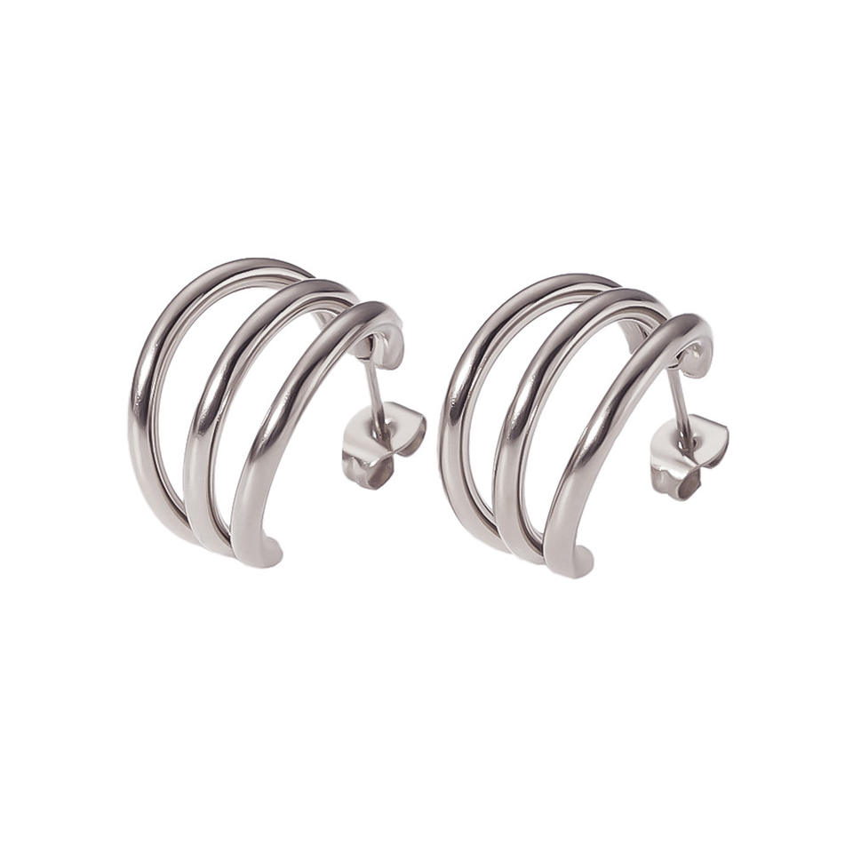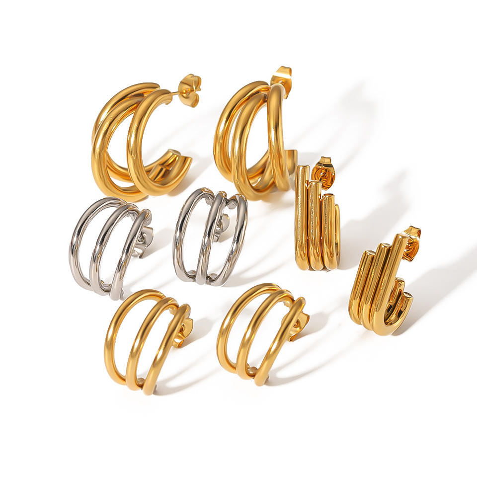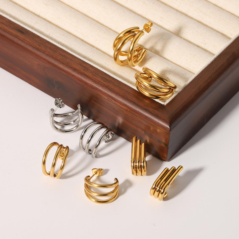 ต่างหูห่วงสามเส้น ชุบทอง 18k สแตนเลสสตีล ดีไซน์วงกลมเรขาคณิต เครื่องประดับแฟชั่นสำหรับผู้หญิง