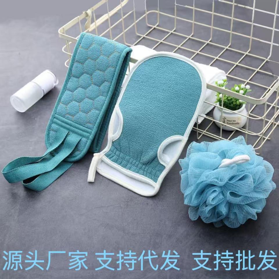 ชุดผ้าขนหนูอาบน้ำสามชิ้น ผ้าฝ้ายขัดหลังพร้อมฟองน้ำใยบวบสำหรับผู้ใหญ่ อุปกรณ์ขัดผิว
