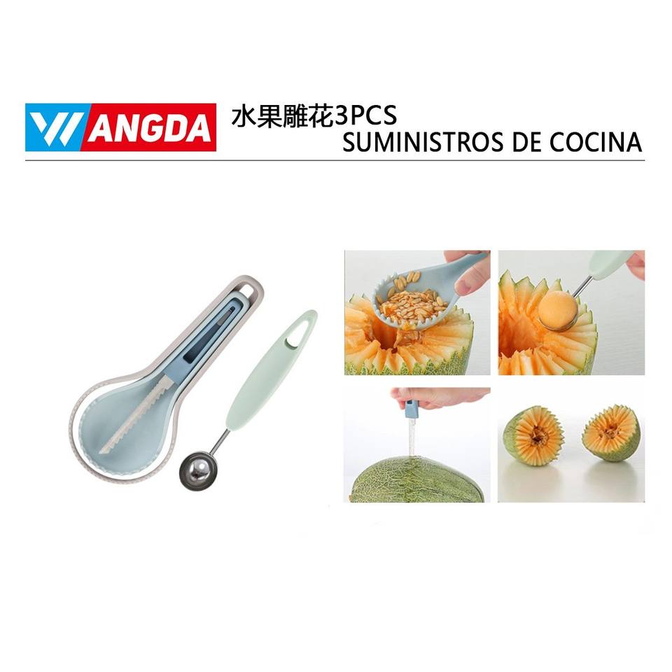 ชุดเครื่องตัดโลหะสามชิ้นที่ปลอดภัยเป็นมิตรกับสิ่งแวดล้อมสำหรับการแกะสลักฟักทองมือจับ PC สำหรับใช้ในครัวเรือนอาหาร