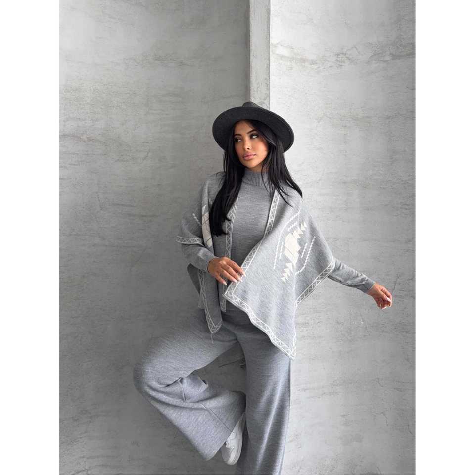 ชุดเสื้อคลุมถักแบบสามชิ้น 1560 พร้อมลายพิมพ์ตกแต่ง