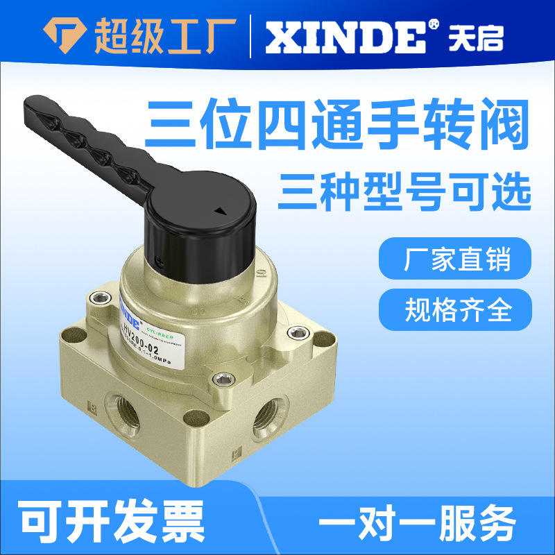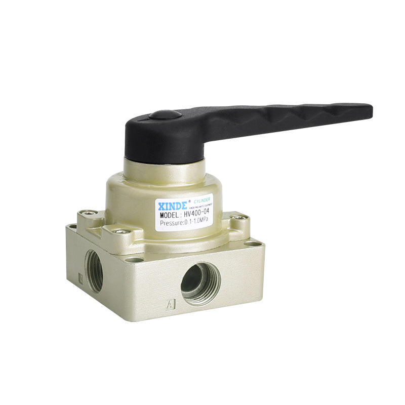 วาล์วควบคุมทิศทางแบบใช้มือ รุ่น HV200-02/300-03/HV400-04 สำหรับกระบอกลมแบบสามตำแหน่งสี่ทาง