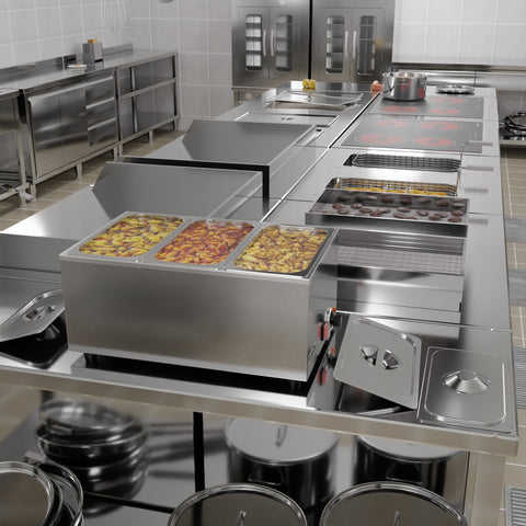 Three-Section 6 Qt. Electric Countertop Food Warmer Stainless Steel Finish Silver Color Model CFW-3 9.6" Height 13.4" Width