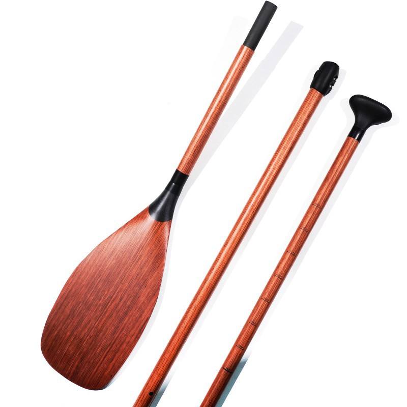 ไม้พายคาร์บอนไฟเบอร์แบบยืดหดได้สามส่วน สีไม้เข้ม ปรับความยาวได้ 175-210 ซม. พกพาสะดวก สำหรับทะเลสาบ แม่น้ำ แบบยืนพาย