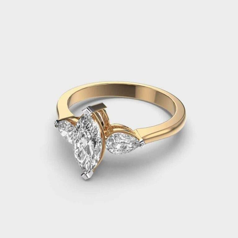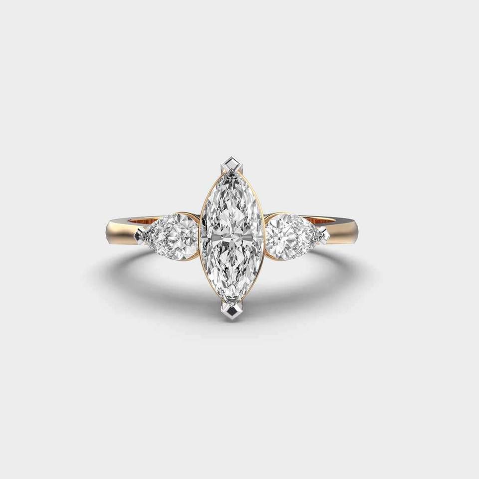 แหวนหมั้นเพชรทรงมาร์คีส์ 2.0 กะรัต แบบ CVD Lab Grown ประดับเพชรทรงหยดน้ำ 3 เม็ด ทอง 14K ราคาโรงงาน