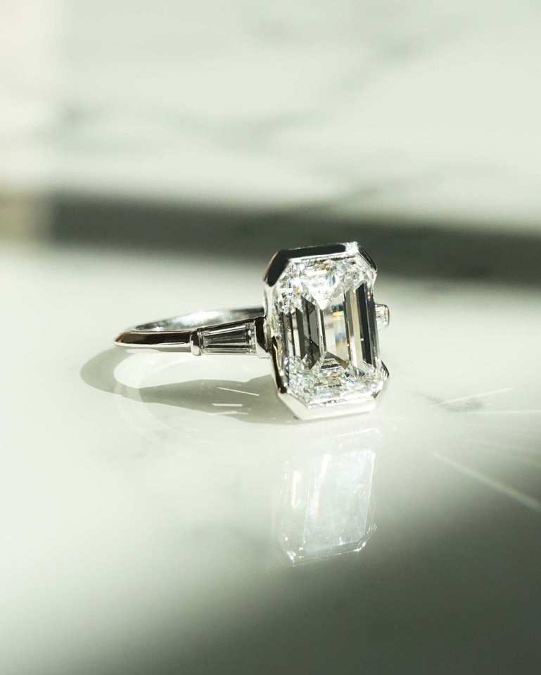 แหวนหมั้นเพชรสามเม็ด3.40มรกตกะรัตสำหรับผู้หญิงแหวนเพชรโมอิสซาไนต์ทรงยาว
