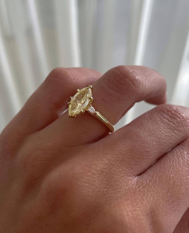 แหวนหมั้นเพชรขนาด2กะรัตประดับ VS1เพชรสีเหลืองสำหรับผู้หญิงแหวนหมั้นเพชรสำหรับงานแต่งงานในห้องปฏิบัติการสามชิ้น