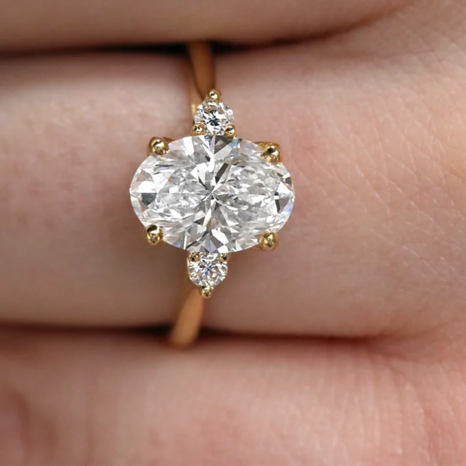 แหวนเพชรสามชิ้นสำหรับ1.70ct รูปไข่และทรงกลมทำจากทองคำ14K สำหรับเครื่องประดับผู้หญิง