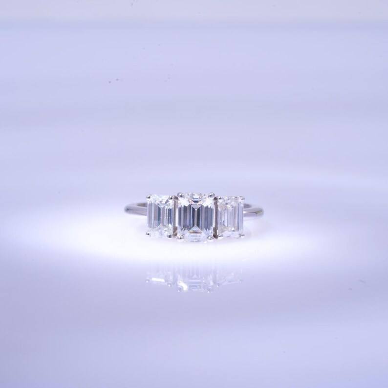 แหวนเพชรทรงเอเมอรัลด์คัท ประดับเพชรสามเม็ด