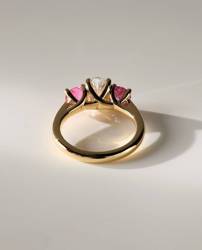 แหวนเพชรรูปไข่สามเม็ดที่เพาะเลี้ยงในห้องปฏิบัติการ ประดับด้วยพลอยสีชมพู ทำจากเงินแท้ 925