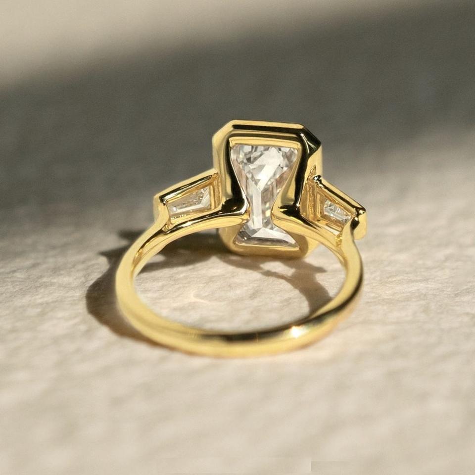 แหวนเงินแท้ 925 ประดับมอสซาไนต์ทรงเหลี่ยมมรกต 4 กะรัต พร้อมเพชรทรงบาแกตต์ด้านข้าง สำหรับงานแต่งงาน ขอแต่งงาน และงานหมั้น