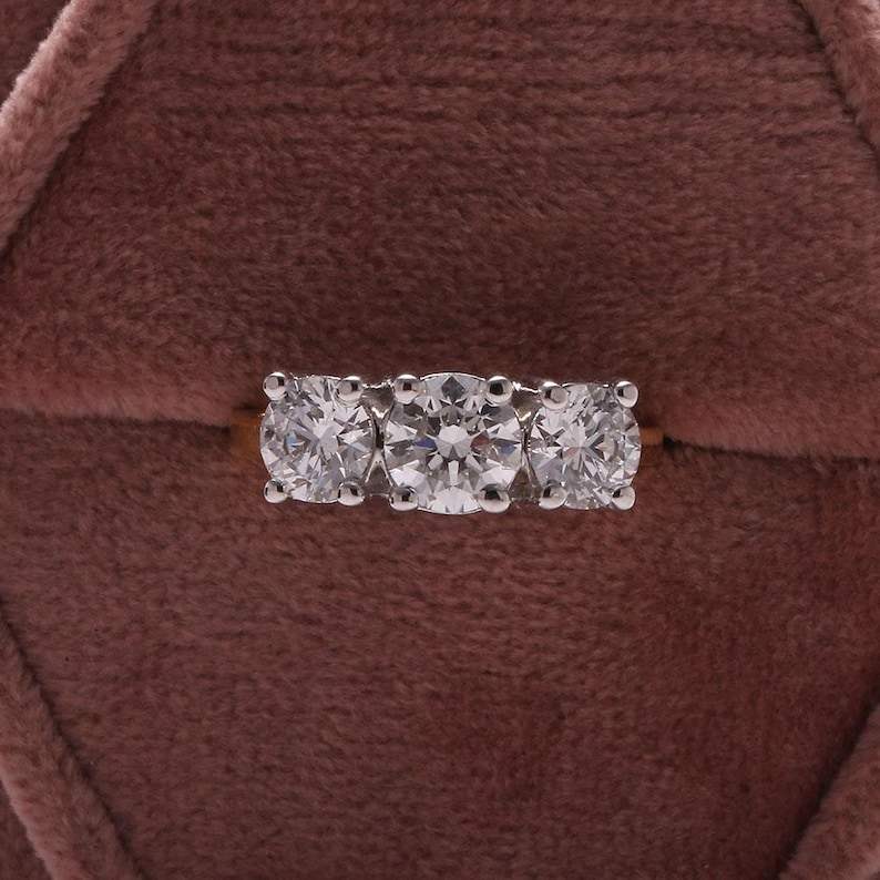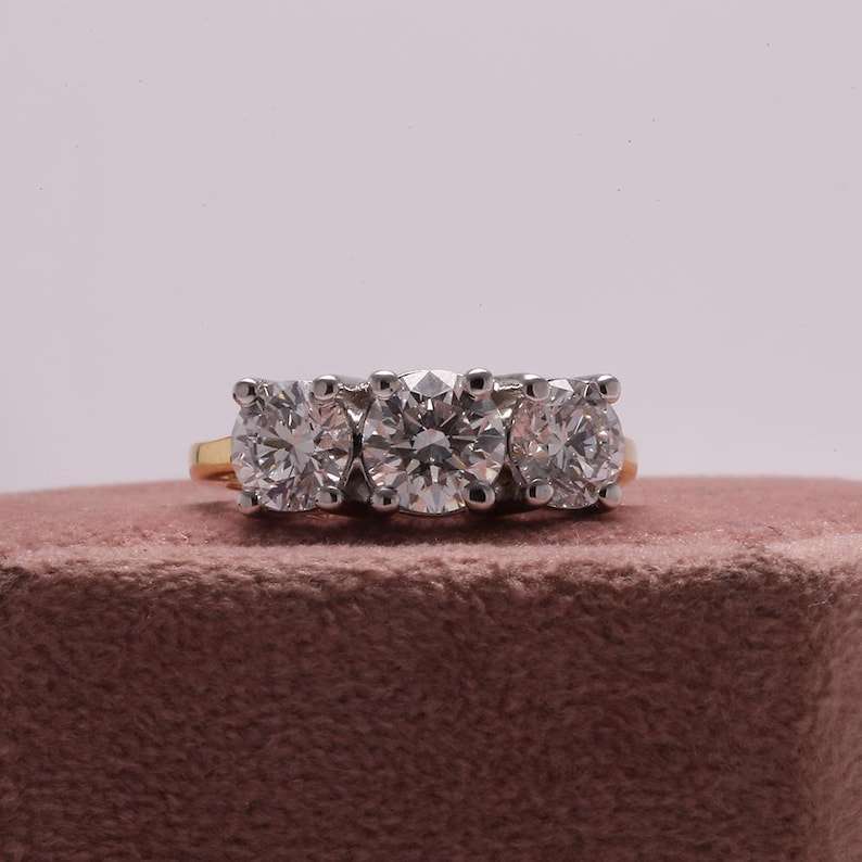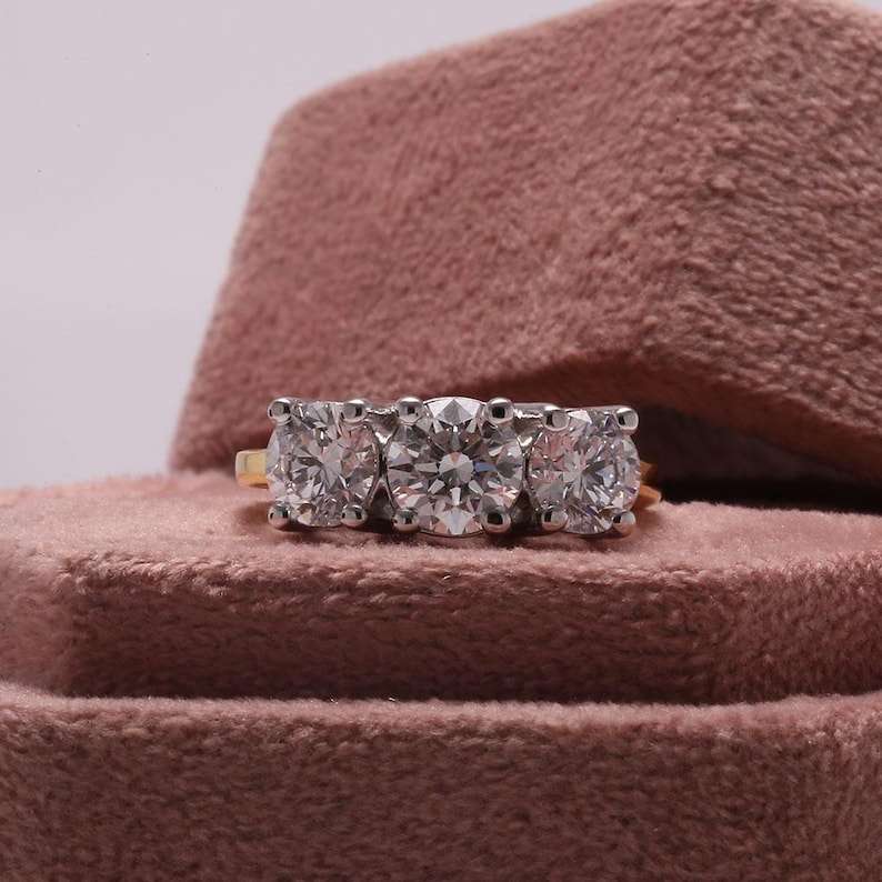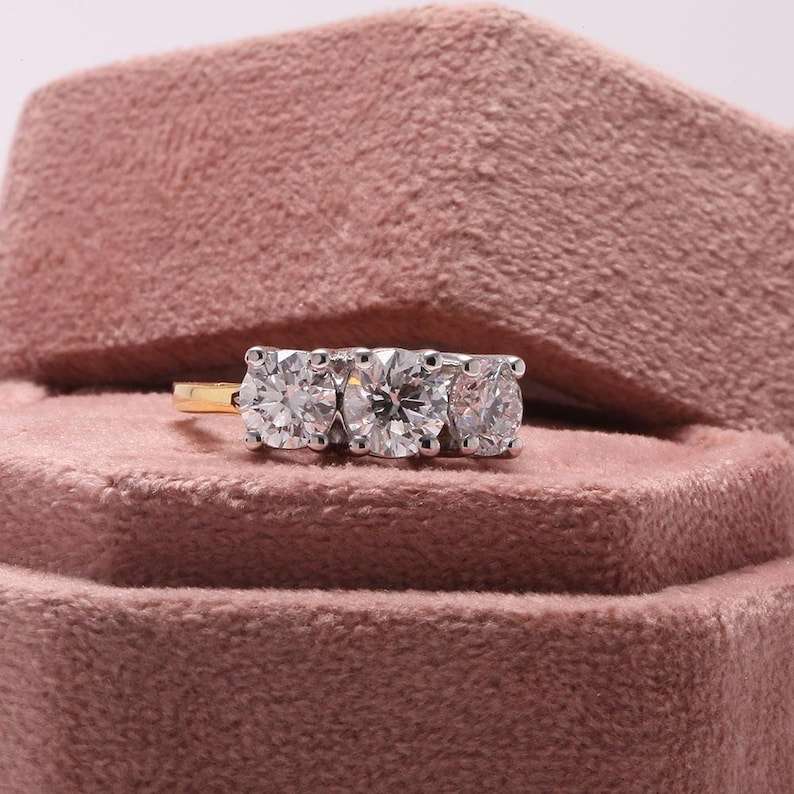แหวนหมั้นเพชรสามเม็ดแบบดั้งเดิม0.80 tcw VS1ความชัดเจนของ VVS2/เพชรที่เหมาะสำหรับการตัดในห้องแล็บแหวนหมั้น14K สีเหลืองทอง