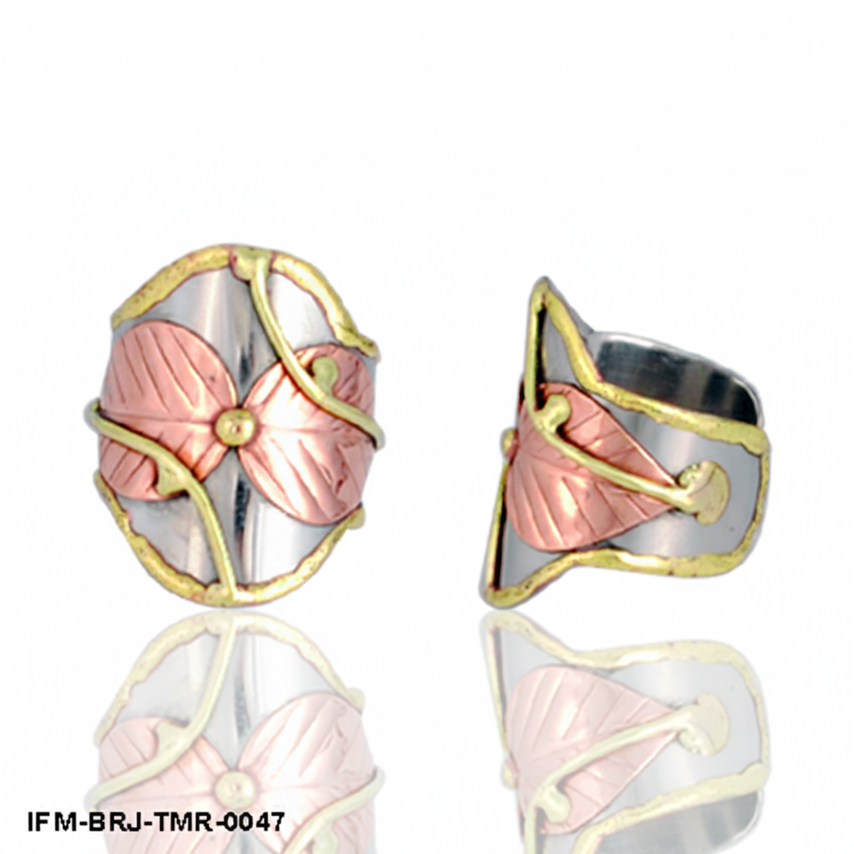 แหวนดอกไม้โลหะผสมสามสี ชุบทองคำขาวและทองคำเหลือง ดีไซน์ลายใบไม้ แหวนแฟชั่น