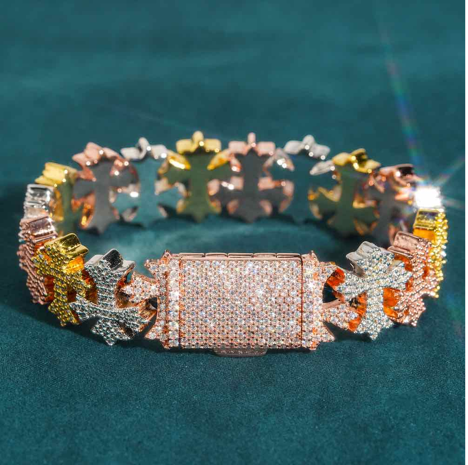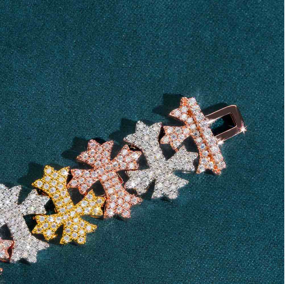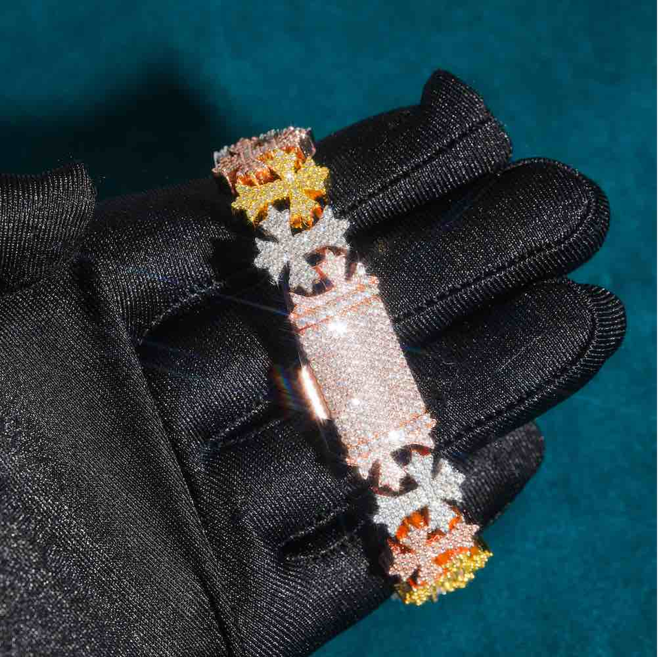 สร้อยข้อมือสามโทนเครื่องประดับสุดหรูทำจากเพชรโมอิส S925สไตล์ฮิปฮอปโซ่10K 12k14k สไตล์คิวบา