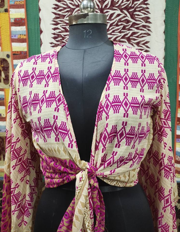 Women Silk Wrap Top with Three Way Styling Bell Sleeves Long Sleeve Design Cropped Fit & Front Tie Ideal for Fashion and Parties