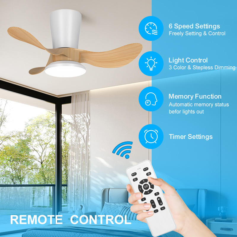 พัดลมเพดานติดไฟ 3 ใบพัดไม้ ขนาด 48 นิ้ว หลายสี โครงโลหะ+ABS มอเตอร์ DC พร้อมรีโมทคอนโทรล ระบบทำความเย็นด้วยอากาศ