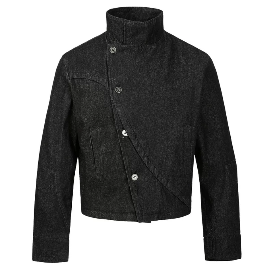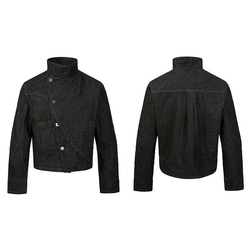 แจ็คเก็ตยีนส์ทรงโค้งสามมิติสำหรับผู้ชาย - เสื้อคลุมดีไซน์ไม่สมมาตรหลากหลายรูปแบบสำหรับชุดยูนิฟอร์มศิลปะการต่อสู้
