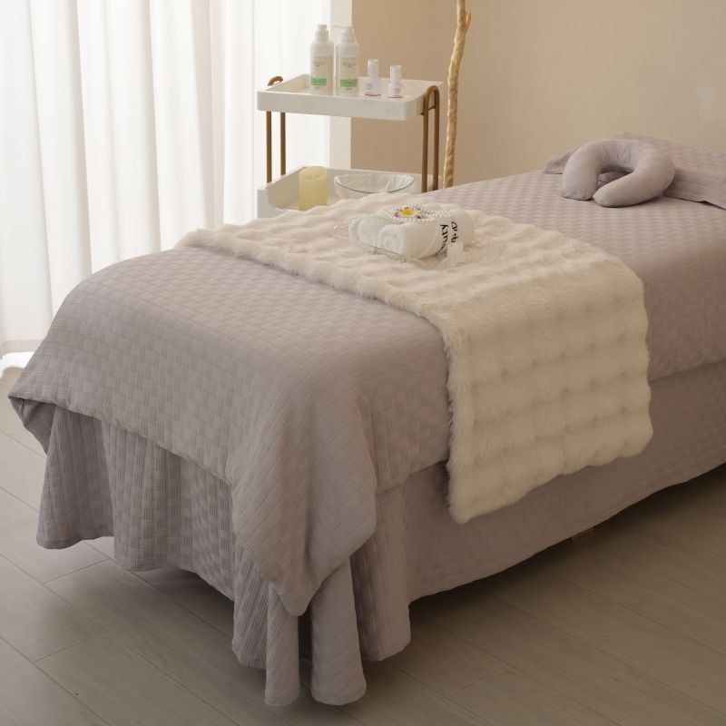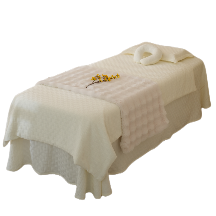 ชุดผ้าปูเตียงร้านเสริมสวยเนื้อนุ่มพิเศษ ลายทอสามมิติ 4 ชิ้น พร้อมโลโก้สั่งทำ