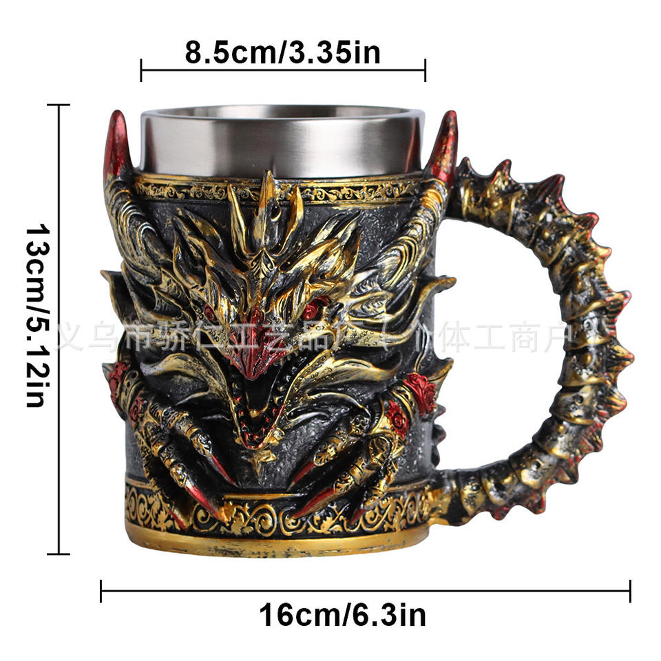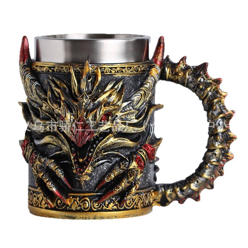 ถ้วยแกะสลักมังกรศักดิ์สิทธิ์สามมิติแก้วกาแฟไวน์ทำจากเรซินให้ความรู้สึกขั้นสูง