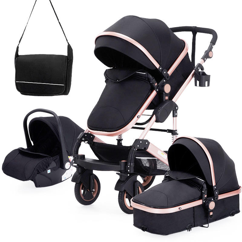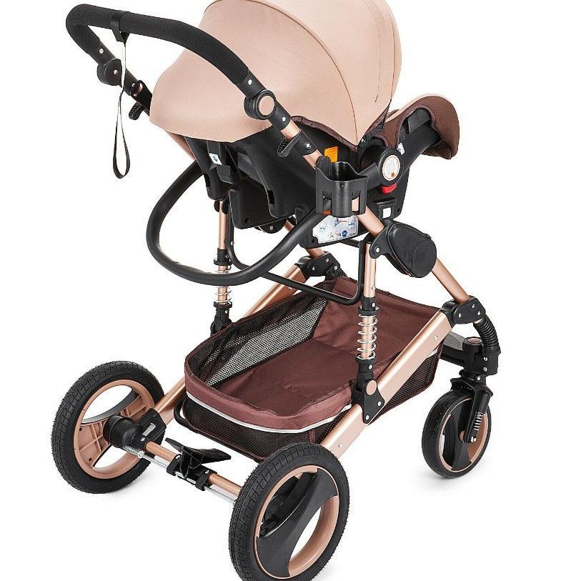 รถเข็นเด็กแบบสาม-ใน-หนึ่ง พับได้ มุมมองสูง ผ้าอ็อกซ์ฟอร์ด โครงอะลูมิเนียมอัลลอย รับน้ำหนักได้ 20 กก. สำหรับเด็กแรกเกิดถึง 3 ปี สามารถนั่งได้