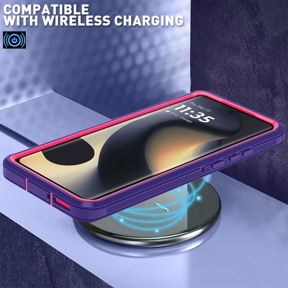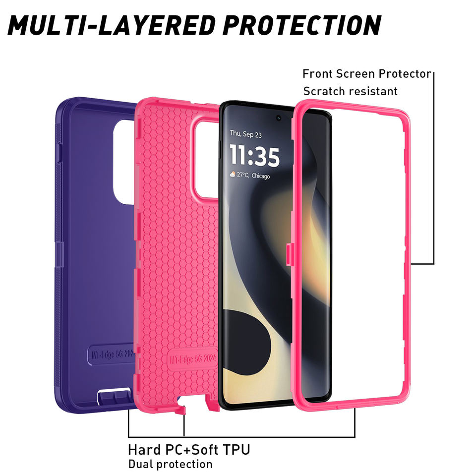 เคสโทรศัพท์มือถือแบบสามในหนึ่งเดียว หลากสี ทนต่อแรงกระแทก ผลิตจาก TPU และ PC สำหรับ Motorola Edge 2024 พร้อมคลิปหนีบเข็มขัด