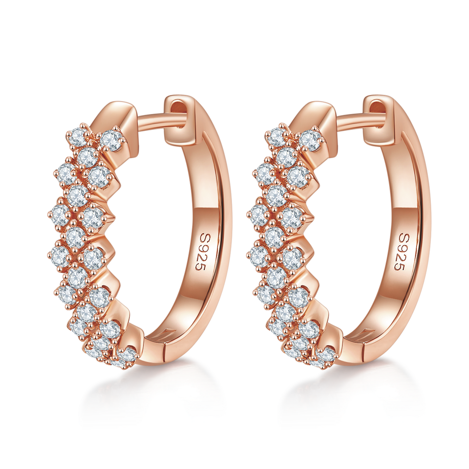 ต่างหูแบบสามแถวครึ่งวงกลม เงินแท้ 925 ประดับเพชรโมอิสซาไนต์ทรงกลมเจียระไนแบบบริลเลียนท์ เกรด D น้ำหนัก 0.51 กะรัต ชุบแพลตตินัม ดีไซน์ทันสมัยสำหรับผู้หญิง