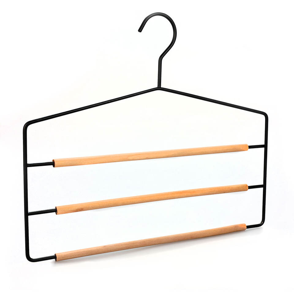 กางเกงหลายชั้นสามชั้น,อุปกรณ์บาร์ไม้ประหยัดพื้นที่ไม้แขวนเสื้อหลายชั้นสีดำ