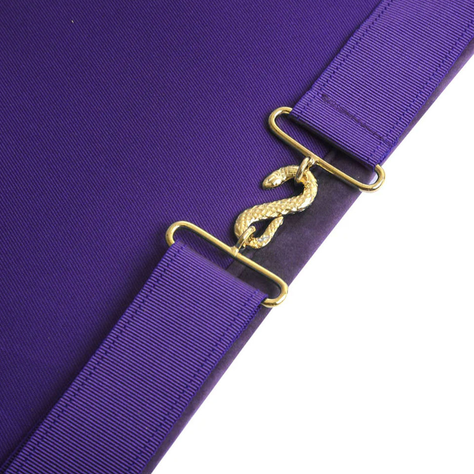 ผ้ากันเปื้อนเมสันแบบสั่งทำพิเศษ ปักลายตามกฎเกณฑ์อังกฤษ รุ่น Thrice Master Royal Select Masters สีม่วงทอง พร้อมพู่ห้อย ขายส่ง